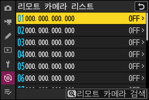 네트워크 메뉴에서 [다른 카메라에 연결]을 사용하여 모든 마스터 카메라와 리모트 카메라를 동일한 네트워크에 연결하십시오.