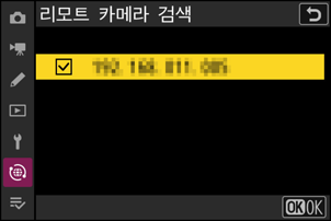 마스터 카메라가 연결 가능한 리모트 카메라를 검색하고 IP 주소를 표시합니다.