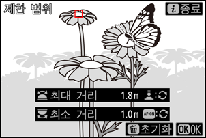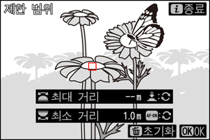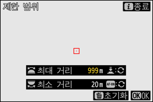 [최소 거리] 및 [최대 거리]에 설정된 값을 초기화하려면 O (Q) 버튼을 누릅니다.
