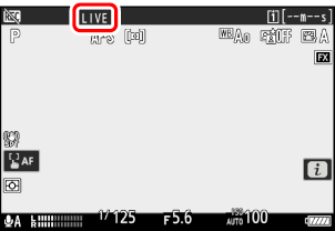 • Video režīma uzņemšanas displejs tiks parādīts neatkarīgi no foto/video atlasītāja iestatījuma. Straumējamajam attēlam tiks piemēroti video režīma iestatījumi, tostarp baltā balanss un Picture Control .