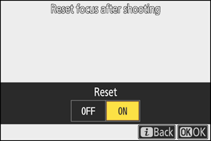 Теперь вы можете выбрать [ Сбросить фокус после съёмки ], нажав кнопку DISP в диалоговом окне подтверждения настроек перед запуском автоматической съёмки. Это позволяет выбрать, следует ли сбрасывать положение фокуса (расстояние фокусировки), когда камера переходит в режим ожидания для автоматической съёмки.