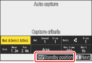 | [ Ponastavi ] | Fotoaparat obnovi položaj ostrenja, ko preklopi v stanje pripravljenosti za samodejno zajemanje. Obnovljeni položaj ostrenja se razlikuje glede na možnost, izbrano za [ Capture criteria ] (Pogoji zajemanja).
