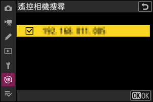 主要相機將搜尋可連接的遙控相機並顯示其 IP 位址。