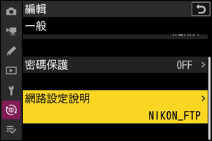 您現可為在網路選單的 [連接至 FTP 伺服器] 中建立的網路配置檔案新增描述性文字。
