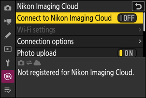 Kamera: Vælg [ ON ] for [ Connect to Nikon Imaging Cloud ].
