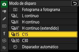 [C15] se ha añadido a [Modo de disparo] en el menú de disparo de la foto. Puede disparar usando