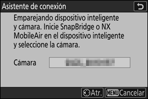 Dispositivo inteligente: Después de configurar los ajustes del dispositivo tal y como se ha descrito en el paso 4, regrese a la aplicación SnapBridge.