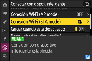 - El nombre que elija aparecerá en la lista [Conectar con dispos. inteligente] > [Conexión Wi-Fi (STA mode)] del menú de red.
