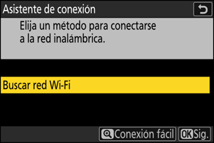 Cámara: Marque [Buscar red Wi-Fi] y pulse J.
