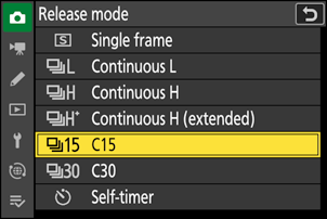 Fotograafia menüüs on [           Vabastusrežiim          ] lisatud [           C15          ]. Pildistamiseks saate kasutada