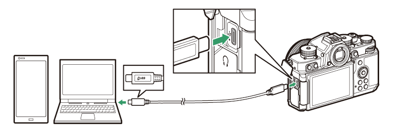 Ühendage kaamera ja arvuti/nutiseade kaasasoleva USB kaabli abil.