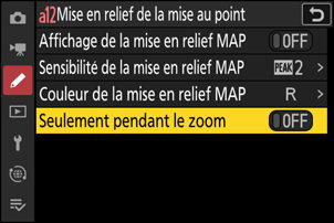 « Seulement pendant le zoom » ajouté au réglage personnalisé a12 « Mise en relief de la mise au point »