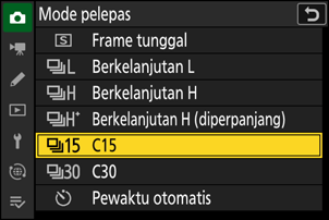[C15] telah ditambahkan ke [Mode pelepas] di menu pemotretan foto. Anda dapat membidik menggunakan