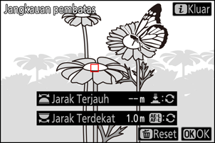 Tekan tombol O untuk mereset nilai yang diatur bagi [Jarak Terdekat] dan [Jarak Terjauh].