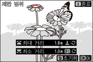 [최소 거리] 및 [최대 거리]에 설정된 값을 초기화하려면 O 버튼을 누릅니다.