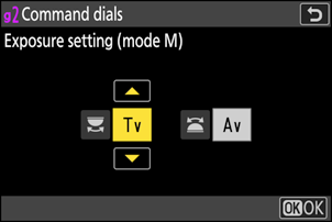 - Pentru a seta rolurile selectorului principal și secundar de comandă, selectați modul M în caseta de dialog [ Setare expunere ] și apăsați DISP .