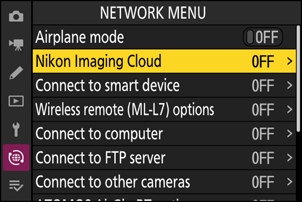 Fotoaparát: V ponuke siete zvýraznite [ Nikon Imaging Cloud ] a stlačte 2 .