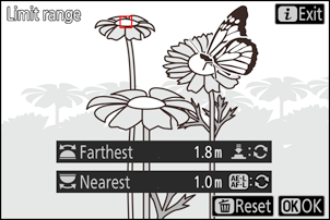 - Ak sa nastavenie [ Limit range ] s novým objektívom neresetuje, opätovné nasadenie pôvodného objektívu umožní zaostrenie v rámci nastaveného rozsahu zaostrenia.