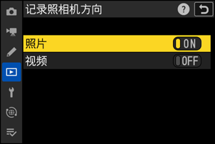 在播放菜单中可分别为照片和视频设定“记录照相机方向”