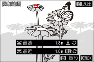 按下 O 按鍵可重設為 [最近] 和 [最遠] 距離所設的值。