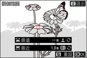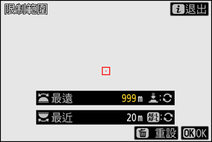 選擇 [ON] 可將相機自動對焦限制在透過 [限制範圍] 選定的範圍內。