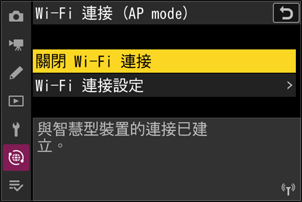 若要結束 Wi-Fi 連接,請在 SnapBridge 的