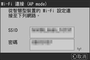 螢幕中將顯示相機 SSID 和密碼。