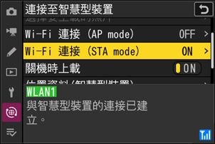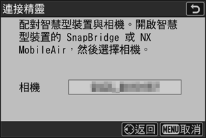 相機:開始與智慧型裝置的 Wi-Fi 連接。