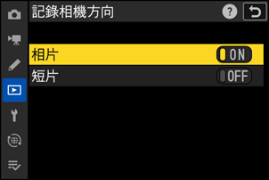 在重播選單中可分別為相片和短片設定“記錄相機方向”